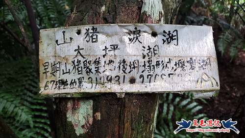 往土庫岳途中經過大坪湖,因早期為山豬聚集地,後坍塌形成堰塞湖,又名山豬淚湖。此後路況變差,依循路條回到步道主線。