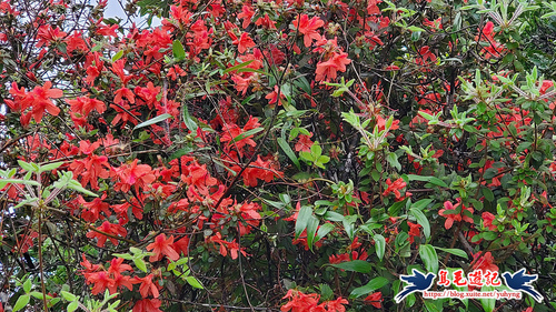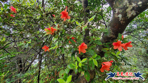 爬上土庫岳,步道旁有一大欉金毛杜鵑綻放,百花齊放火紅耀眼,真不負「滿山紅」之別名,涼亭內已多名山友在休息聊天了。