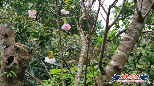 續走更寮步道支線,經椿萱農場叉路口返回停車處。九天宮附近的產道旁山櫻花花期已過,幾棵吉野櫻已陸續開花了。 1100228