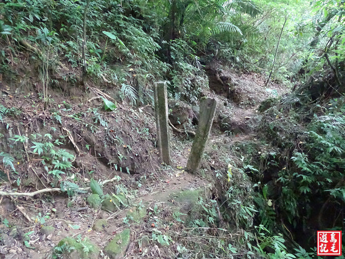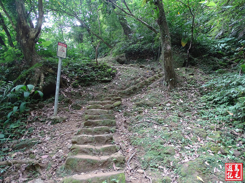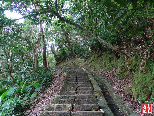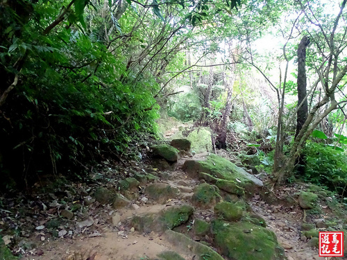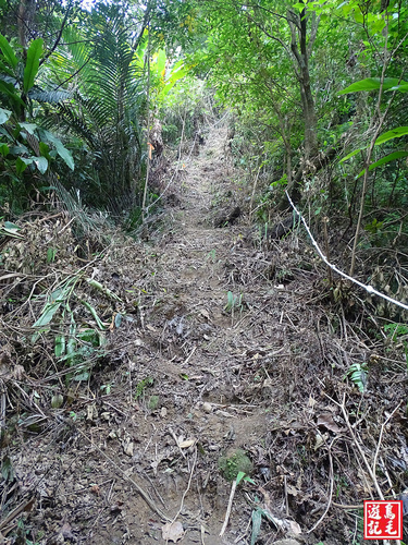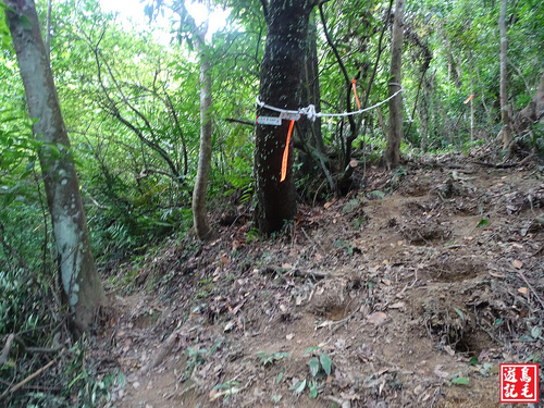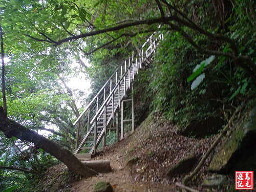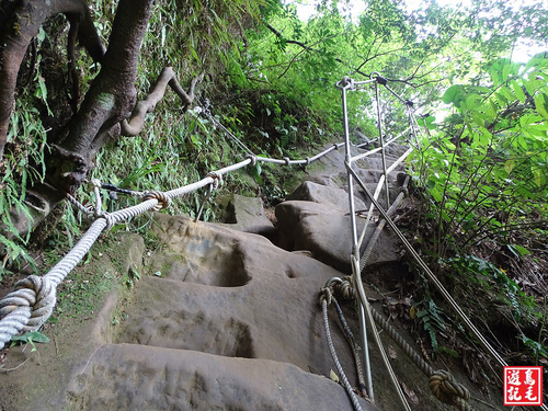 看到著麼陡的路線少說也有60度以上,採逆時針方向由五分寮山下來省了許多氣力,若是從下面往上爬肯定是硬斗A苦戰呀~