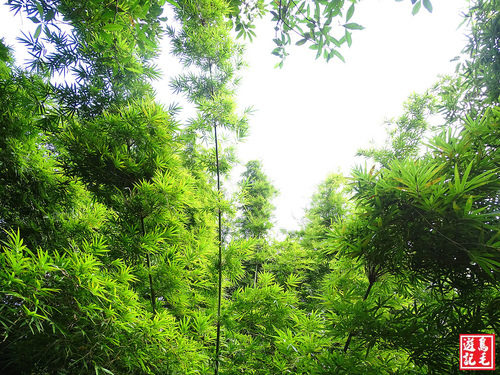 步道續往左橫切過來,經V型水泥柱後,出現漂亮的綠光竹欉區。