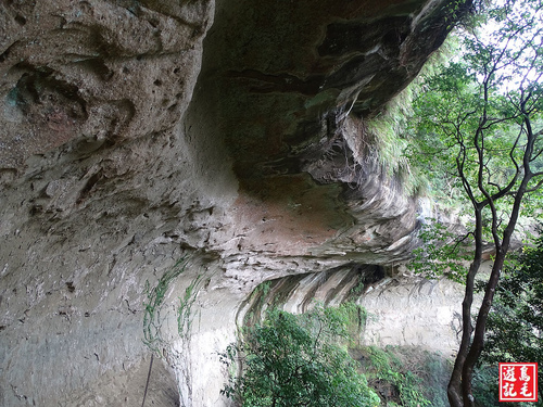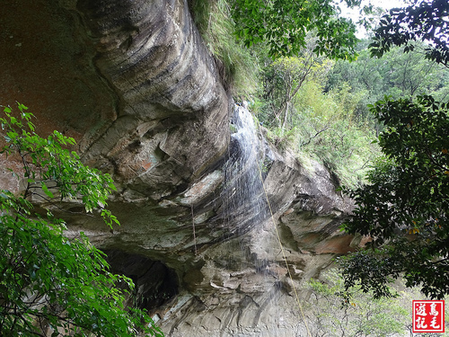 枇杷洞瀑布旁有小徑可達瀑頂的岩壁下方,像是半月弧狀的凹洞,若是盛水期可近距離觀看瀑布雄壯渾厚的霸氣懾人,