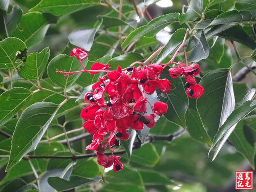走在嶄新的路徑上,穿越樹林、桂竹林和山坡芒萁區,整理得超乾淨的,走起來狠暢快,林間的野鴨椿已長滿紅色果實了。