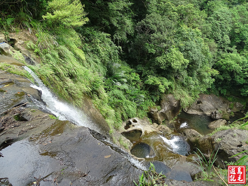 從五分寮山下來合谷瀑布瀑頂約25分鐘,站立瀑頂休息賞景一番,讓人又驚又喜,美麗之中總是潛藏著危機,還是要注意安全。