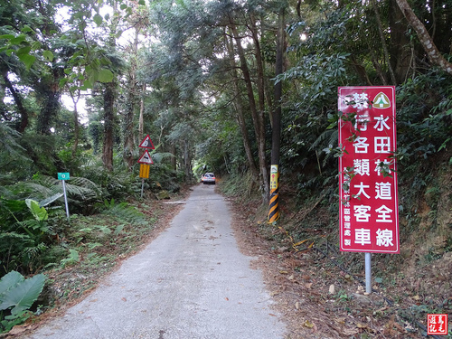 其實水田林道支線這段3.2K,ㄧ般小汽車慢慢開應該還OK的(開太快底盤會撞到坑洞窟窿),我與友2人約步行50分鐘抵登山口,