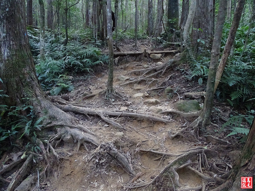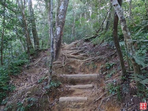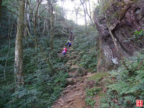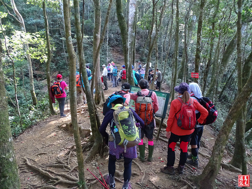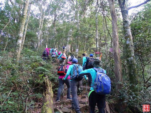 過1.6K環形神木步道叉路直行上爬,今日大隊人馬衝熱台灣山毛櫸魅力難擋,前仆後繼往內鳥嘴山開爬,真是漫長又辛苦的~