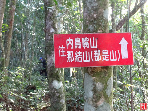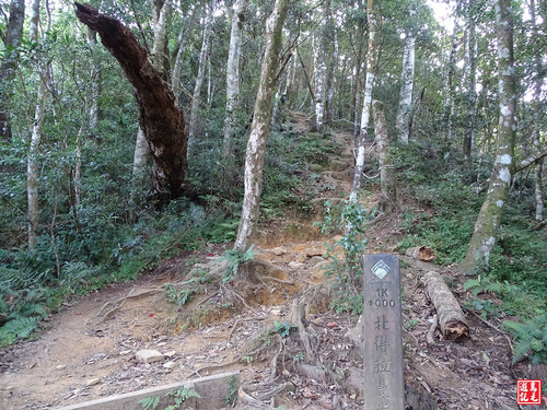 原來是被騙了,爬了將近25分鐘,才抵內鳥嘴山下,終於在步道一旁叉路出現2棵高大的山毛櫸,讓人為之振奮不已呀~~