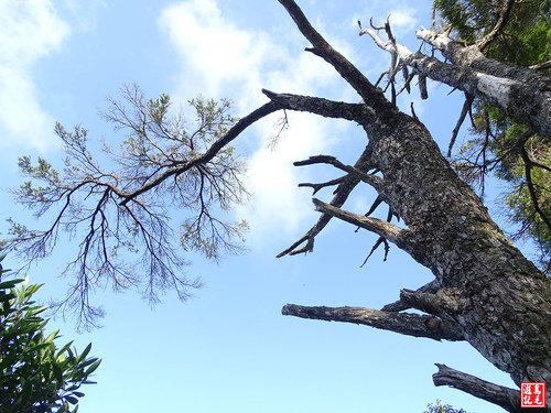小段陡下之後再陡上,高山上挺拔的樹影,特別象徵著堅忍卓絕、不屈不饒的毅力,祂的恢弘高度豈容惻度呢?!