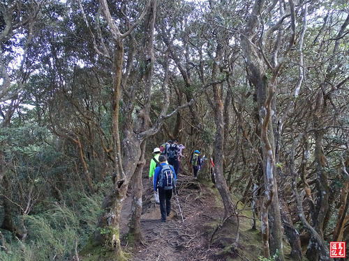 過回音谷經高山杜鵑林,轉為陡下至神木群環形步道休息站,此時大批山友集結,就像山中的菜市場,這票至少有2-30人呀~~