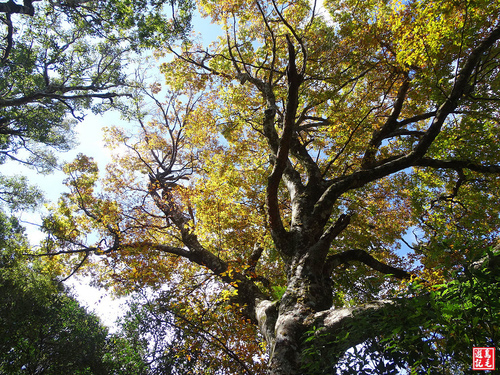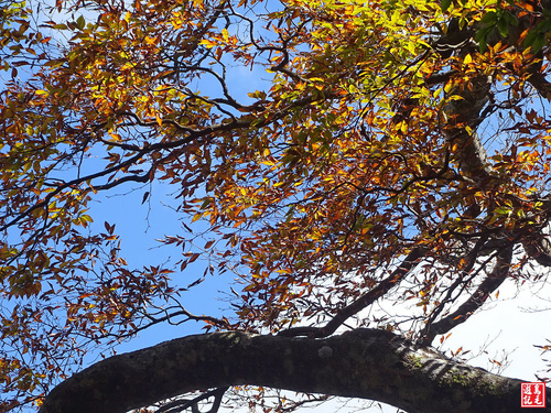 金碧輝煌,璀璨耀眼的台灣山毛櫸,在純淨的藍天之下,烘托出秋季令人無限的驚艷。