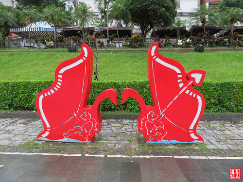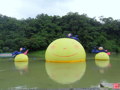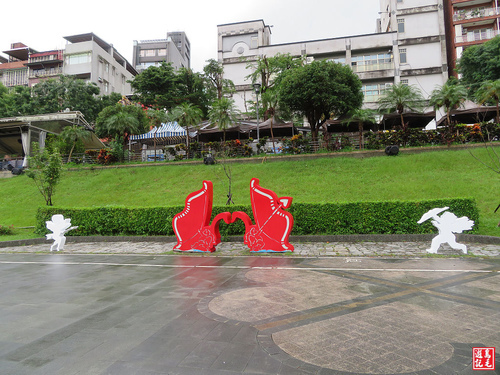 碧潭水岸旁出現適合戀人拍照打卡的藝術景點