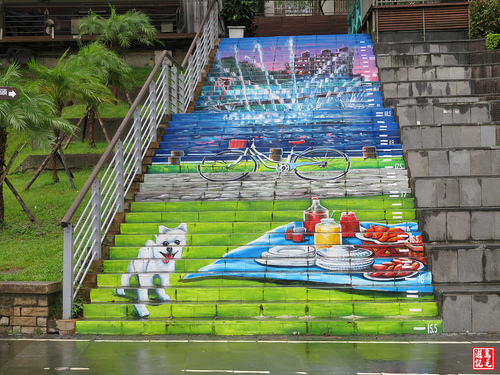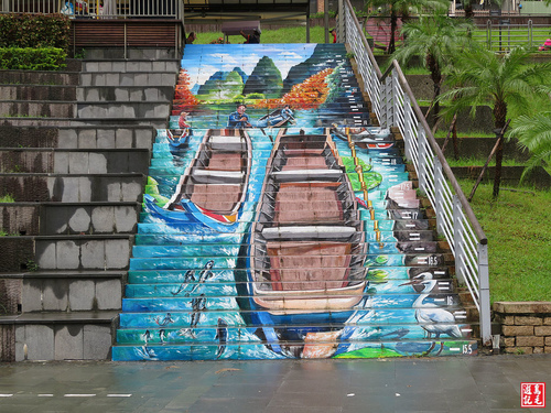 彩繪階梯結合當地人文藝術,構圖鮮艷,栩栩如生阿...