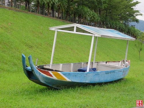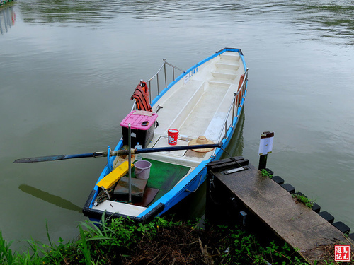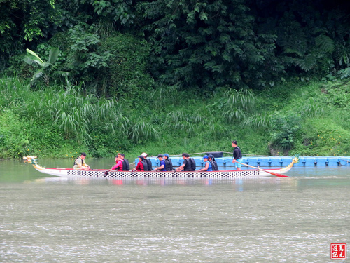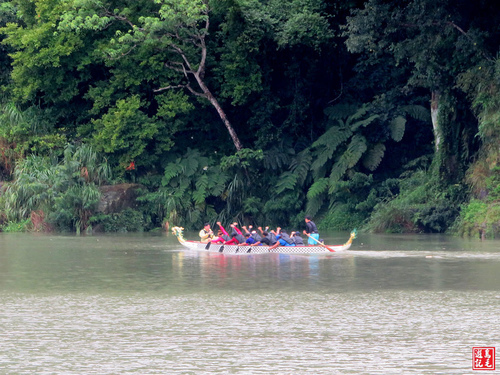 獨自走在水岸旁望著綠葉扁舟,新店溪上龍舟人手一槳,同心協力,疾速前進,這需要很大的默契吧!呵呵~~
