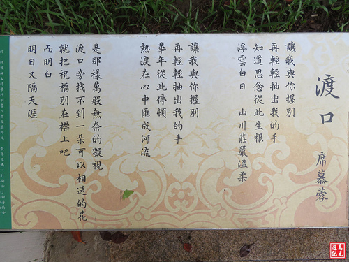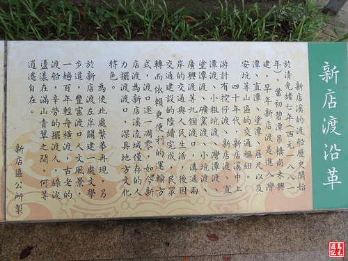 穿過露天咖啡坊綠光大道,來到全台唯一人力擺渡--新店渡渡口,流覽「新店渡沿革」,品嚐席慕容「渡口」詩作,