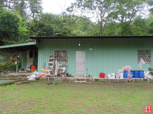 至瓜寮坑7號民宅,是1間粉綠色鐵皮屋,房屋左邊有一小水池,值得一提的是,屋主也是愛花人士,栽種5盆艷紅鹿子百合,