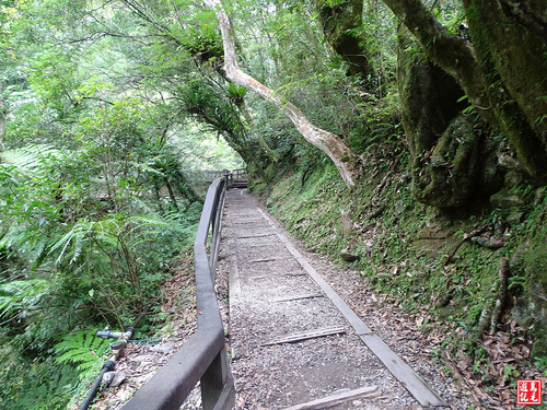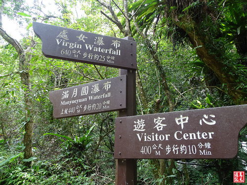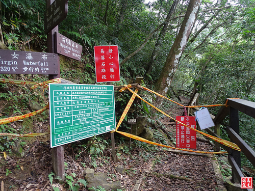 往處女瀑布途中另有叉路可通滿月圓瀑布,可惜步道封閉整修中,續碎石路步道緩上坡往處女瀑布。