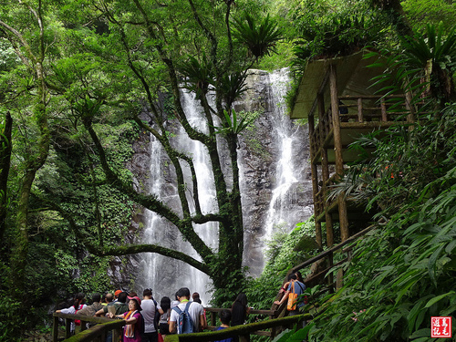 瀑前有二層樓涼亭,爬上涼亭賞瀑休憩,整個暑氣全消,盡情享受天然的冷氣呢~~