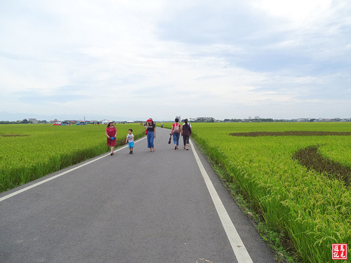 沿著稻間美徑漫步,藍天白雲艷陽高照,整個熱到不行,陽光與稻穗的暖熱溫存,空氣中飄散著微醺的稻香,置身其間,