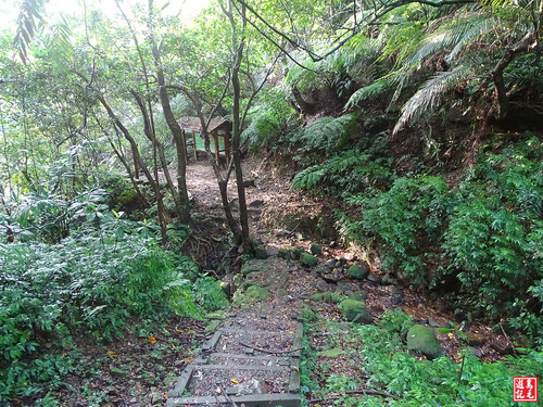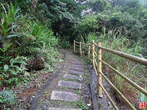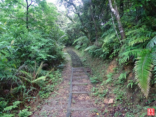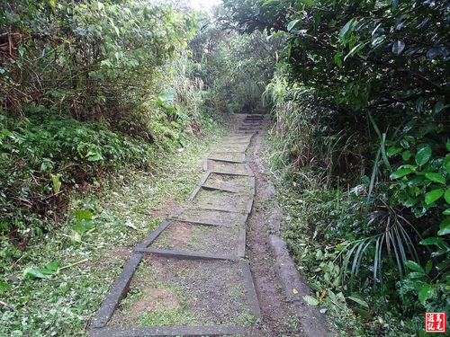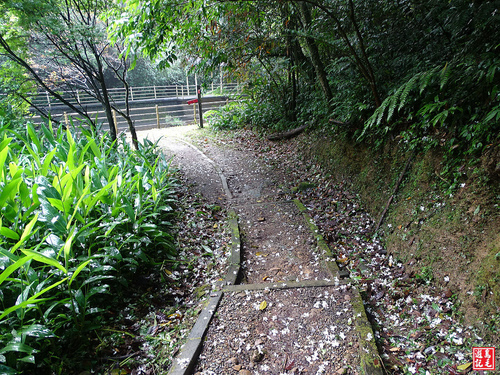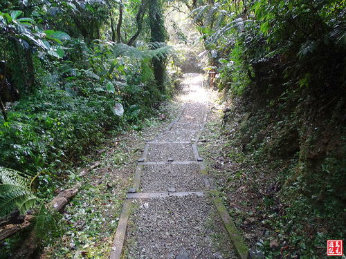 環狀登山步道配合賞桐季節,兩旁雜草清理很乾淨,今天採右上左下逆時針方向O形,循碎石路階梯漸緩上坡,