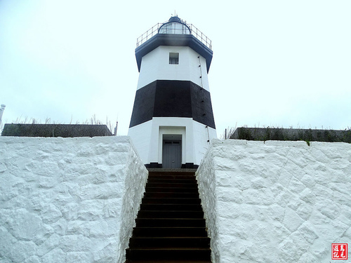 富貴角燈塔隸屬交通部航港局管理,除了塔身主體搭配黑白層次外,其它建築房舍皆為純白顏色,如有藍天背景相襯,