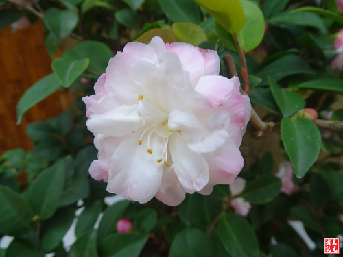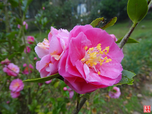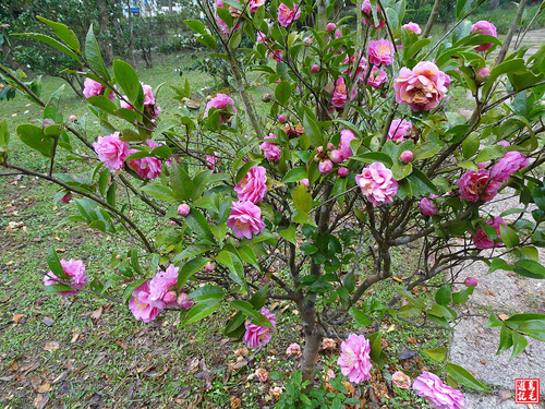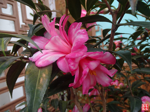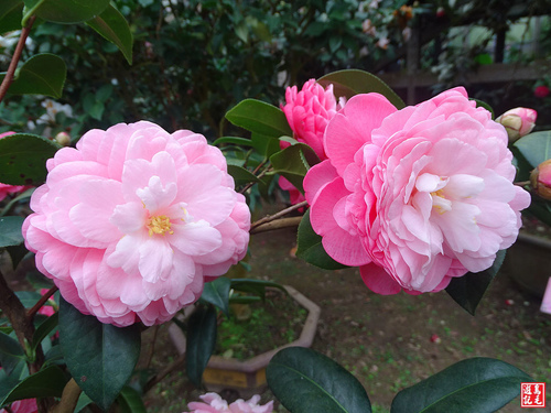 茶花和蘭花,互別苗頭,各有美色,茶花品種何其多,有單瓣、有重瓣,花色有粉紅、粉白、艷紅...實在是不一而足,