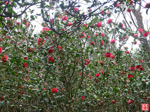 園區內的茶花品種約有500多種共萬餘株,有原種、山茶花、茶梅、肥厚茶、雲南茶及雜交茶六大類之多。