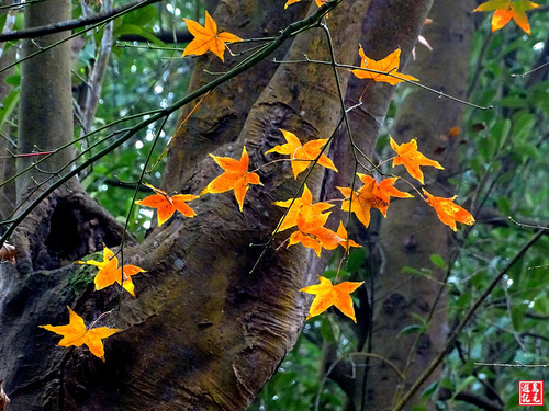 薄霧中金黃殘楓、冰清玉潔的梅花,還有高雅的木蓮花(又稱辛夷),也來共襄盛舉,真不虛此行說。
