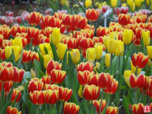 繽紛浪漫的鬱金香花海計有紅、白、紫、粉紅、黃色……等多樣花色,更有引人注目的雙色品種,極受民眾喜愛。