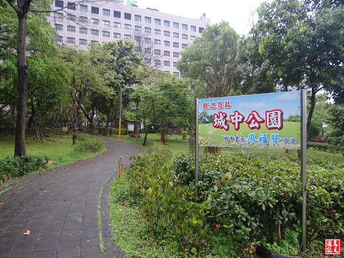 隨著步道前行經過汐止國泰醫院後方,此處設有城中公園,花木扶疏,空氣清新,也很適合病患或家屬出來透透氣,