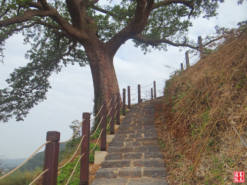 循產道上爬,至茄苳老樹平台,地方政府新建環形步道,繞行一圈也才幾分鐘而已,據解說牌述,茄苳又名重陽木,到了秋天,