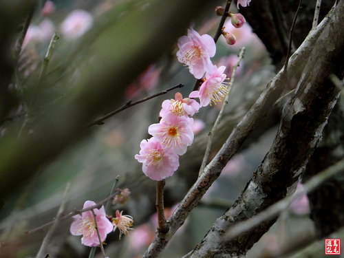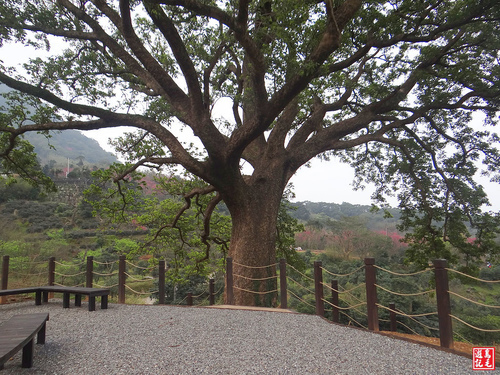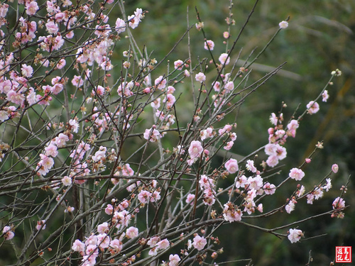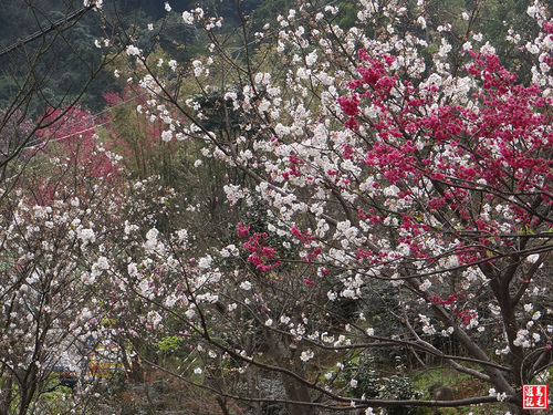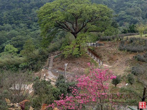 茄苳老樹平台旁有一株梅花樹,繁花滿樹梢,仔細一看卻是別有特色,她是粉紅色ㄉ花朵,比一般的白梅更顯嬌艷!