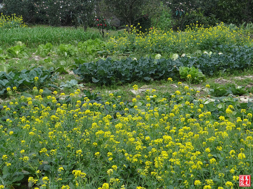 山坡間的民宅菜園之內,有黃澄澄的油菜花盛開,想要靠近拍照,忽有一隻惡犬狂吠(驚!),趕緊抽腿離開...