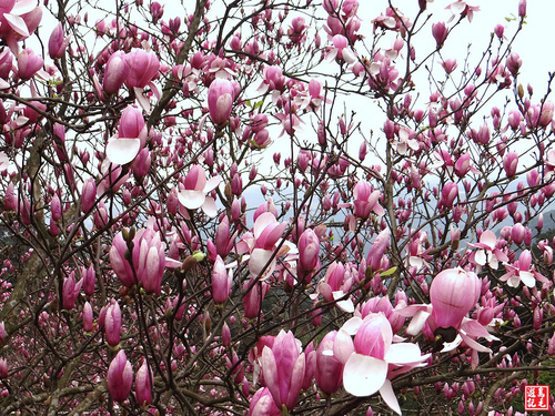 沿楓樹湖產道爬到巨石花園叉路上來,開始賞心悅目的木蘭花賞。