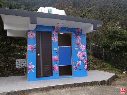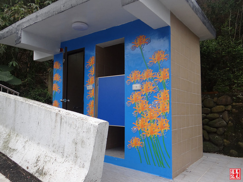 今日淡水楓樹湖春遊賞花,發覺此地幾處公廁也別具巧思加以美化,增添了地方特色,彩繪的牆面是楓葉、金花石蒜及木蘭花,