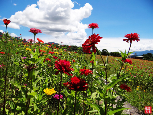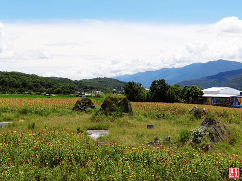 午後艷陽高照,天氣特別熱,今天到六十石山欣賞金針花海下山後,騎機車返回富里車站,在台9線315K附近,發現一片花海,