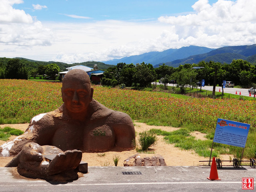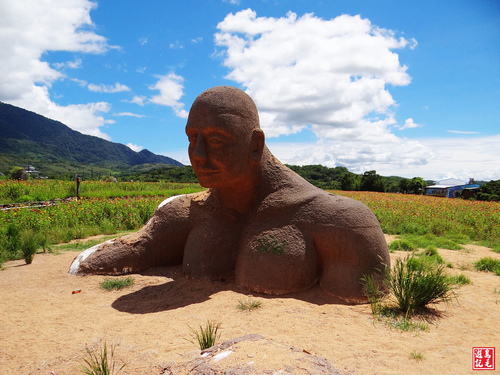 此處的粗糠巨人是全台唯一的粗糠地景藝術,巨人內部是保麗龍,表面鋪上厚厚的粗糠,想表達土地帶給人們豐富的食物,