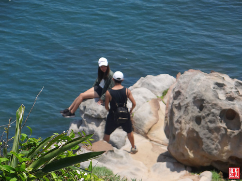 順著階梯往下走,凸出岩石處可見情侶拍照打卡,燭台雙嶼,海天一線,景色無敵,但也要注意安全。