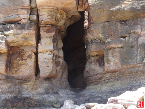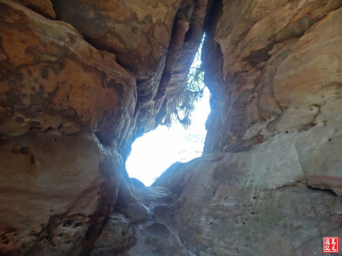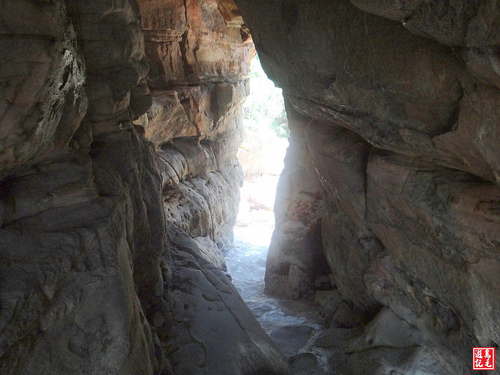 慢慢走進一線天內,回望剛入的洞口外,風從洞口灌入,感覺洞內特別涼爽,洞深不到10公尺,很快就到另一端洞口了。