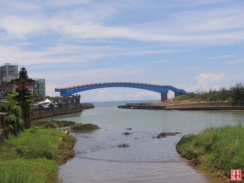 從一線天岩縫鑽過來之後,堤岸旁階梯翻過來就是水尾漁港了,再穿越停車場,臨走前欣賞一下員潭溪景觀橋。 106.7.1