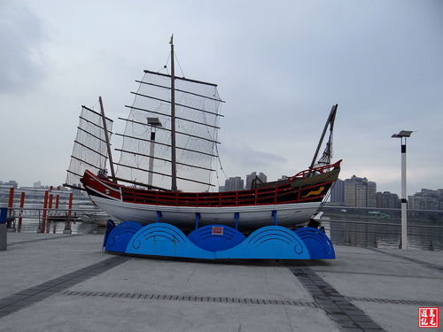 拼湊出流暢條狀圖騰,加上河岸風光景致,美景如畫,賞心悅目。
