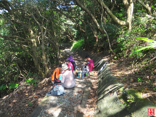 鞍部樹蔭下有登山隊已在享用午餐了,這條野柳村登山步道從仁愛之家下往野柳漁港,對我來說就像是吃完大餐後的水果甜點而已,