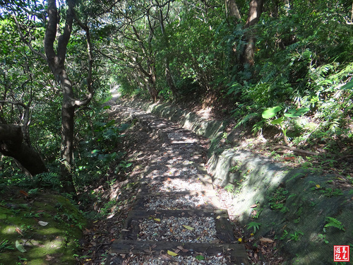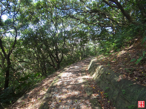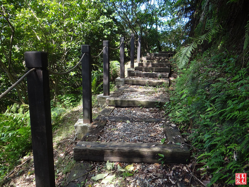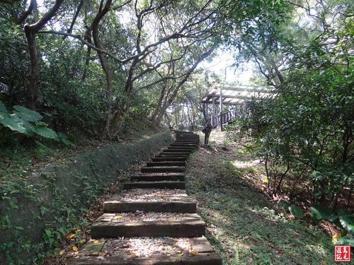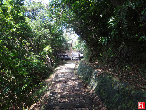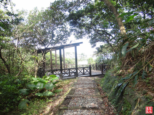 不用費力苦爬,只須輕鬆下山,經墓園露天段稍有雜草,快步通過,接下來都是碎石路,會經過2處木棧涼亭觀景台。