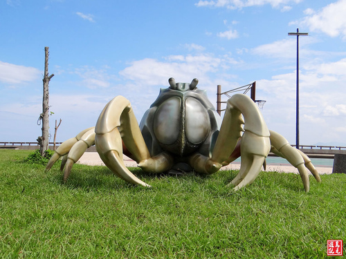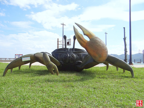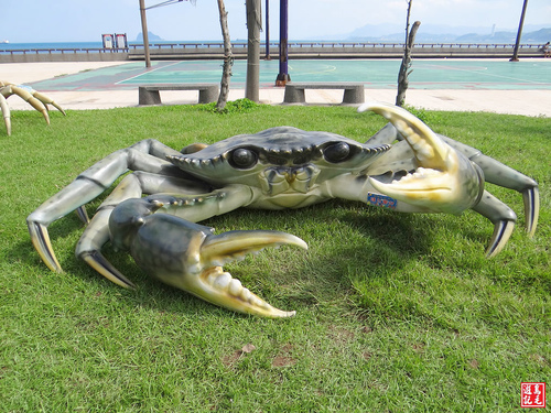 公路旁的綠色草皮上還有大螃蟹地景藝術,遊客爭相拍照打卡,建議遊客儘量選擇大眾運具(有接駁車),以免塞車。 105.10.23