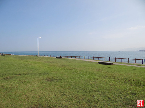從平浪橋過來之後經過幾家海鮮餐館,眼前茵茵綠草大地,搭配藍天白雲和無敵海景,來此遊玩的旅客打卡拍照是一定要的,