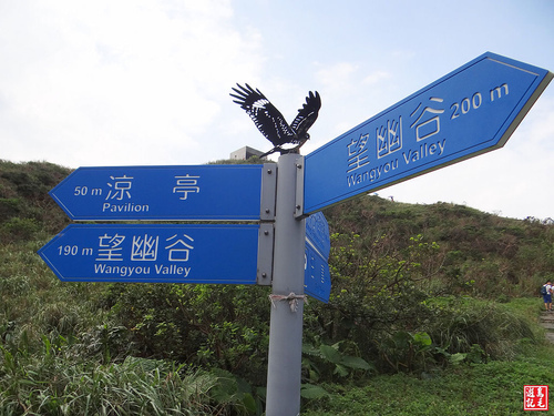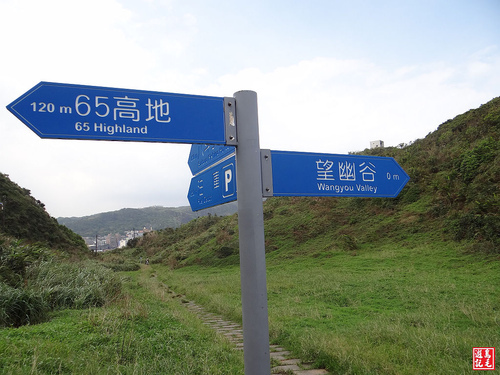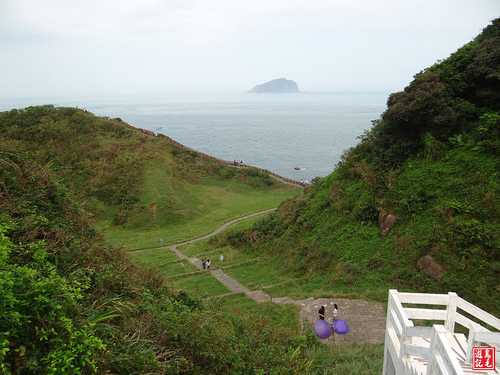 從65高地停車場旁經過九曲橋階梯下來,就到了望幽谷,山谷青翠,綠草如茵,微風徐徐,海天一線,景色優美。