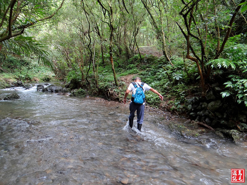 接著來到第2越溪處,溪面較第1處更寬,這次我先過溪,有了上次經驗,放慢腳步過溪以免靴筒進水(水較深處約有3-40公分)。