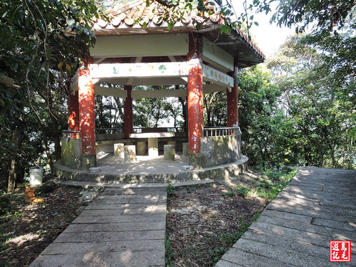 自登山口寬大石階上來,約10分鐘經過水泥涼亭,裡面有多隻流浪犬正占據石桌、椅上納涼休息,看起來很不衛生,