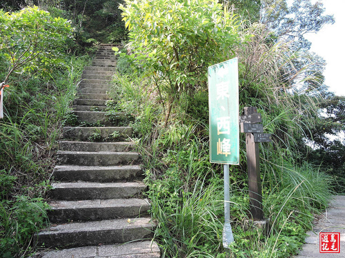 續依指標往東西峰方向,10餘階石階後轉為原始山徑,設有「前方山徑尚未開放請勿通行避免危險」告示牌,(這不是矛盾嗎?