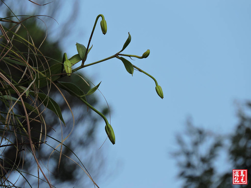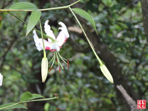 再爬到岩壁另一側觀望,僅見幾株艷紅鹿子百合,已長出不少花苞,但都還沒開花。