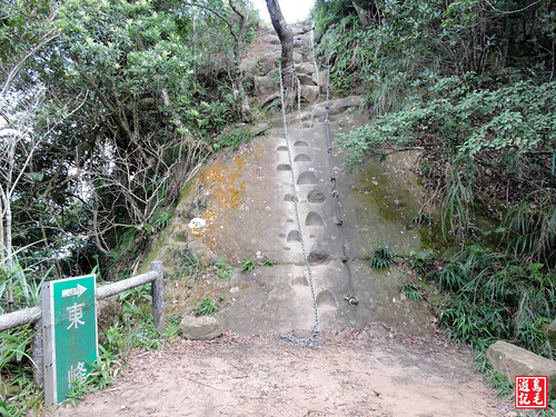 繼天王峰之後又是陡上峭壁,從下到上約有20公尺,體能絕佳者或可拉著鐵鍊攀上去,右手邊另有鑿石踏階可輕易爬上。